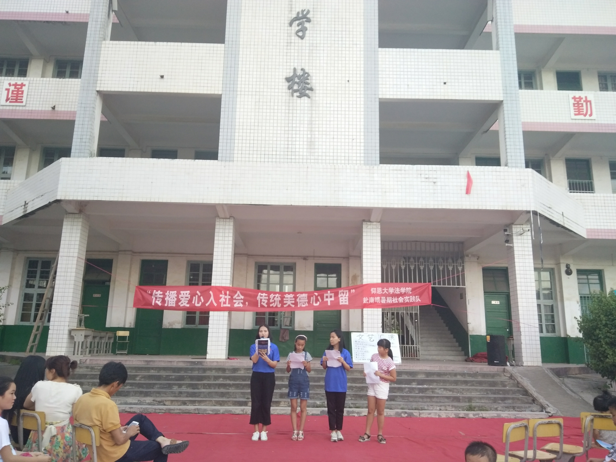为了感谢实践期间汤坑村村民对实践队成员的帮助与关爱,BEAT365官网赴南靖实践队于7月19日举办了一场小型文娱汇演来感谢大家。莅临汇演现场的有:汤坑村党支部书记张志猛、汤坑村村长、计生会会长和汤坑小学教师石老师。