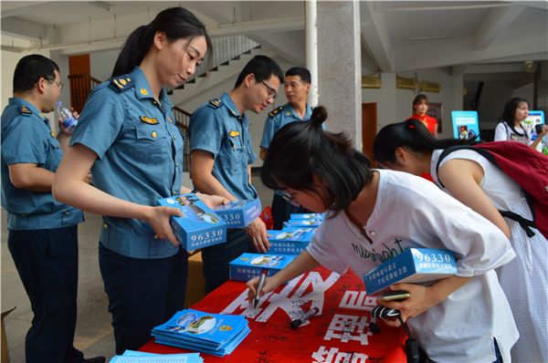 活动期间,路政处车梦霜在与学生事务部主任吴胜潮互赠锦旗,工作人员引导师生进行横幅签名活动,并观看了路政普法宣传展板。