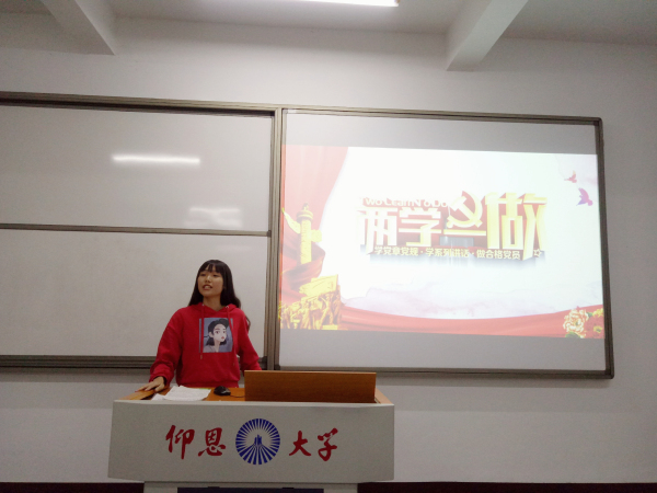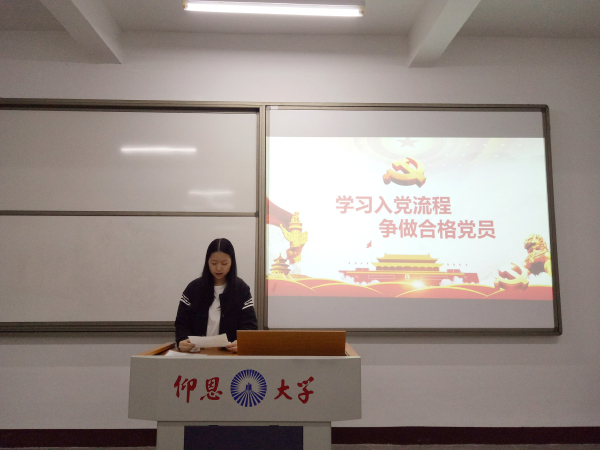 此次专题活动主要以“铭记历史,争做合格党员”为主题,从了解党的光辉历史、学习入党流程等方面展开。会上,吴佳馨、陈镰制等同志分别从“两学一做”和“严守党风党纪,不忘初心”等方面入手,讲述了作为一名大学生党员应认真学党章党规,学系列讲话,做合格党员,不忘入党初心,铭记党员身份,牢记历史,更要展望未来。