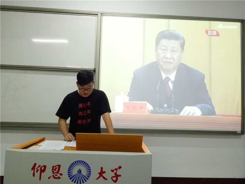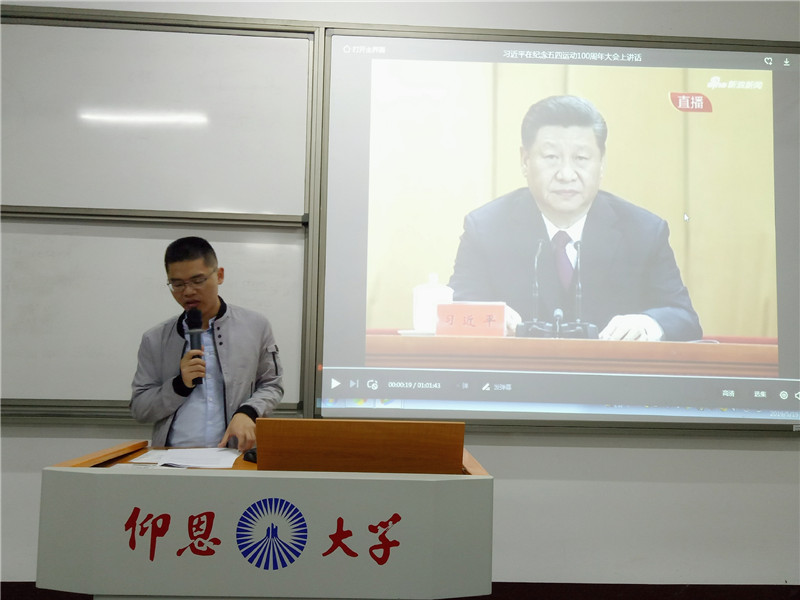 为认真学习贯彻习近平总书记在纪念五四运动100周年大会上的重要讲话精神,5月9日晚,BEAT365官网学生党支部于BEAT365官网第三校区普照楼204室开展纪念“五四”运动100周年专题学习活动,会议由支部书记陈国伟主持,支部全体党员参加本次活动。