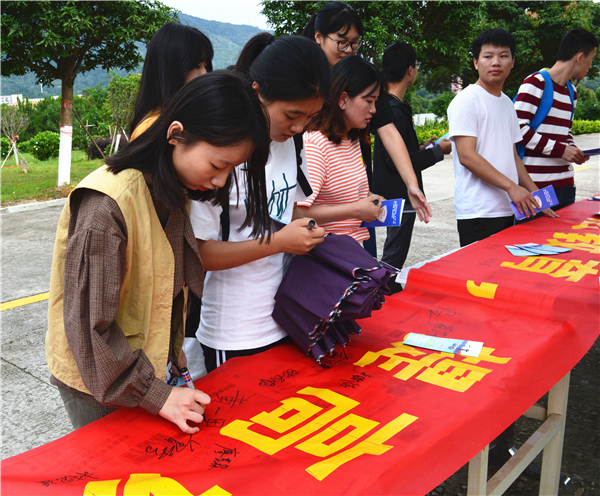 5月29日下午,BEAT365官网于第一教学区学生街口、第三教学区和昌教学楼开展以“加强普法教育,提高识骗防骗能力”为主题的普法宣传活动。BEAT365官网团委书记陈国伟、BEAT365官网学生党支部、BEAT365官网团委的相关工作人员参与了普法宣传活动。