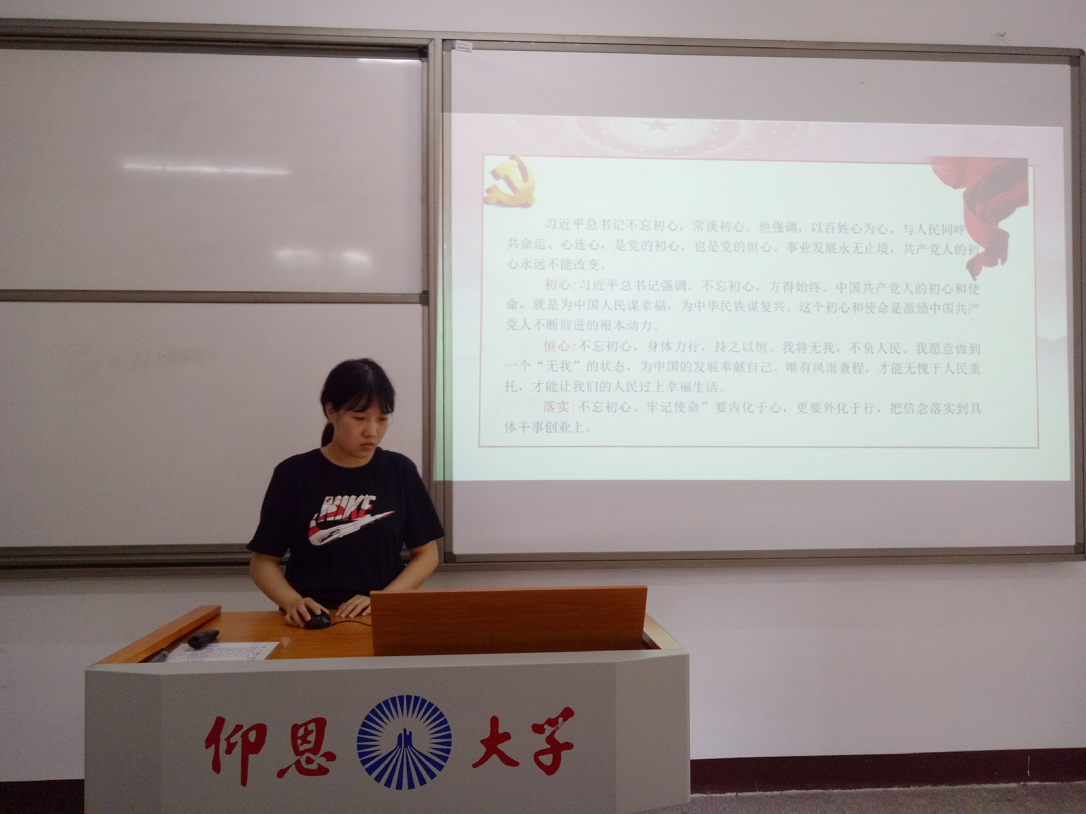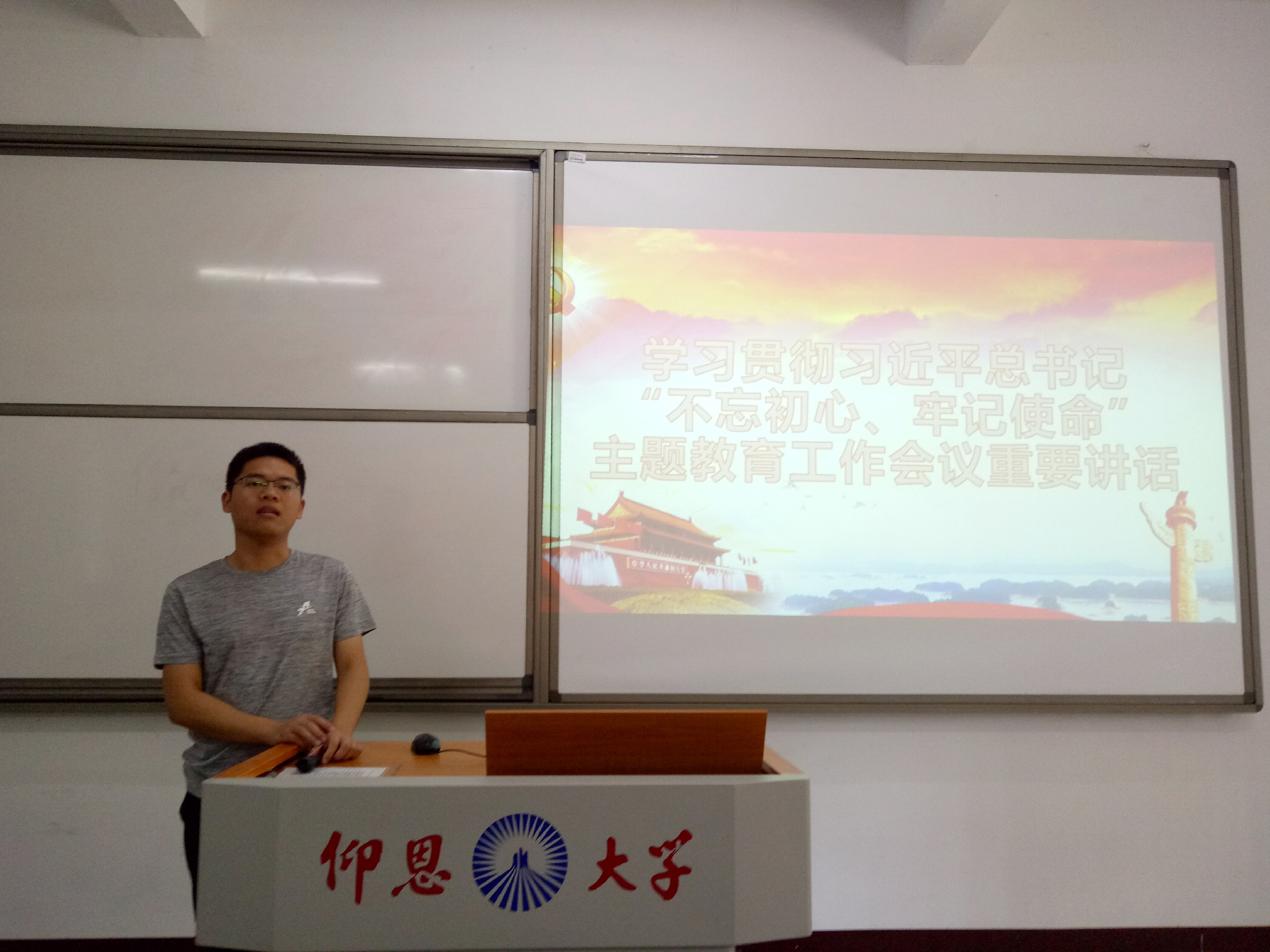 会上,支部党员认真学习了习近平总书记在“不忘初心、牢记使命”主题教育工作会议上的重要讲话精神。陈国伟指出,作为一名学生党员,要深入学习领会习近平总书记重要讲话精神,增强“四个意识”、坚定“四个自信”、做到“两个维护”,要深刻把握“守初心、担使命、找差距、抓落实”的总要求,牢记我们党肩负的历史使命,严格要求自己,杜绝学习教育形式主义。期间,支部成员结合自身实际情况发表学习感想与体会,其中俞欣婕同志表示我们要树立远大理想,勇担时代责任,以思想自觉引领行动自觉,以行动自觉深化思想自觉;张容同志则表示作为新时代的青年党员,要坚持旗帜鲜明讲政治,加强自身的政治定力,自觉对标对表,完善自我。