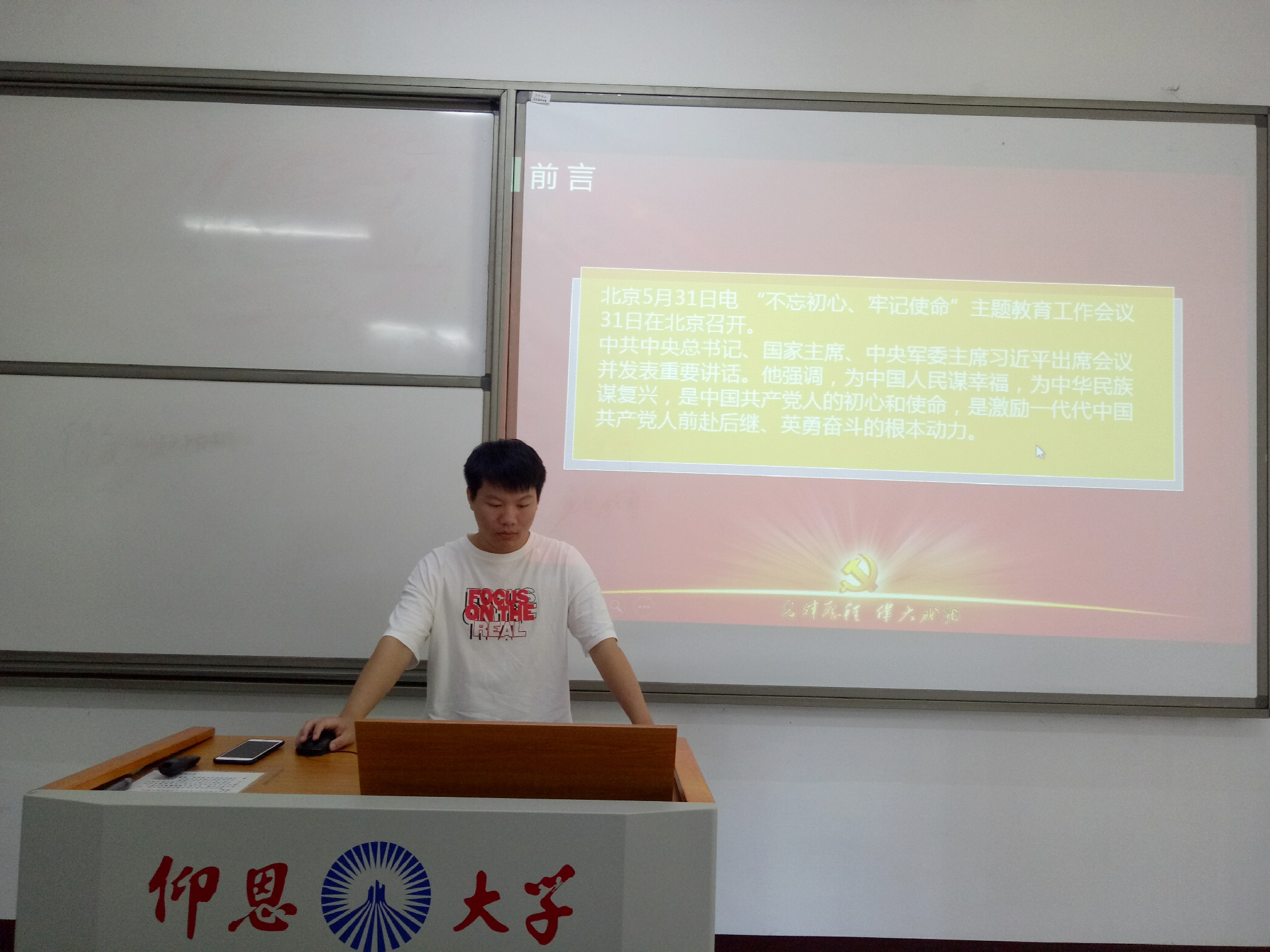 6月3日晚,BEAT365官网学生党支部于BEAT365官网第三校区普照楼204室开展“不忘初心、牢记使命”主题教育学习会,会议由支部书记陈国伟主持,支部全体党员参加了本次活动。