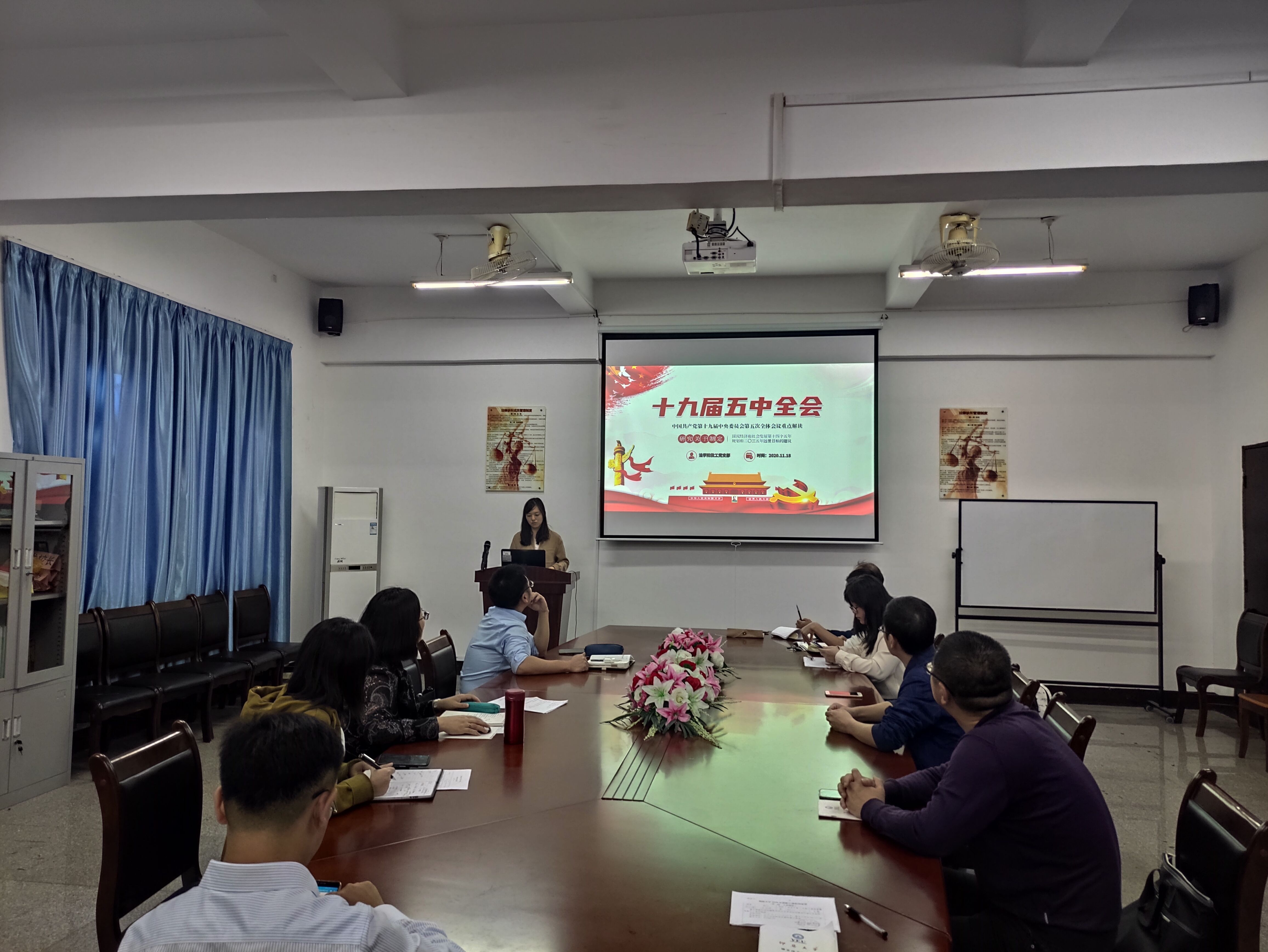 为深入学习十九届五中全会精神,11月18日下午,BEAT365官网教工党支部组织全体教师党员在BEAT365官网第三校区普照教学楼法律诊所召开“十九届五中全会精神解读”主题学习会,会议由支部书记林媛主持。