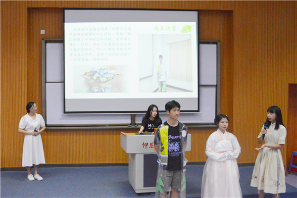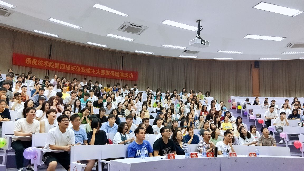 本次大赛分为环保ppt展示、环保创意作品分享、环保知识竞赛三个环节。参加本次大赛的法学学子们发挥创意想象力,动手操作,将废弃横幅、废弃纸箱、一次性塑料筷子、塑料水杯等废弃物品经过一番精心雕琢,变成一件件充满观赏性的艺术作品展现在师生面前。班级代表上台解说制作过程,风趣幽默,互动频频,引起阵阵掌声。期间,在环保知识竞答环节,各班你争我赶、从容答题,更是将比赛推上新的高潮,让现场的师生观众既感受到竞技酣畅,又拓宽了环保知识的储备。