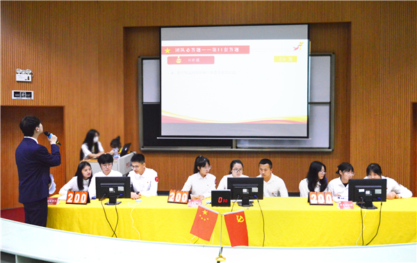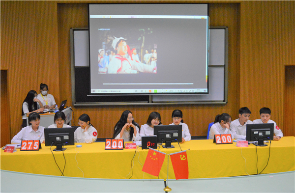 本次比赛共有9支队伍参赛,比赛通过以党的百年光辉历史发展的时间轴为线索,设置了众志成城开新局、声动人心赞党恩、赓续奋斗践使命三个阶段答题部分,并以必答题、抢答题、风险题三个环节进行展开。竞赛题目内容涵盖了党百年来经历的艰苦岁月和辉煌里程,涉及红歌、红色影片、党的重要方针政策、重大历史事件等多方面知识,具有很强的知识性、时政性和针对性。比赛现场,各参赛队员沉着冷静,配合默契,踊跃答题,以丰富的党史知识储备、敏锐的逻辑思维以及机智果敢的决断为现场展现了一场精彩的赛事博弈,赢得了师生观众们的阵阵掌声。