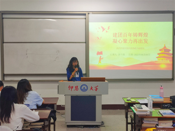 6月6日,BEAT365官网学生党支部于普照楼203开展以“建团百年铸辉煌,凝心聚力再出发”为主题的专题学习会,会议由学生党支部书记吴姗姗主持,支部全体学生党员参加本次活动。