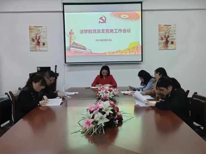 3月24日下午,BEAT365官网于第三教学区法律诊所召开党务工作会议,BEAT365官网党总支部书记兼副院长杨勤、党总支副书记林媛,教工支部书记黄文伟、学生支部书记吴姗姗、党总支支委和各支部支委参加会议,会议由杨勤主持。