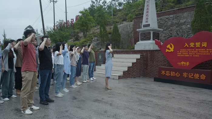 全体师生党员首先参观党史文化公园,了解洪四村“红色荣耀”故事,缅怀革命先烈英勇付出,体悟革命烈士的红色精神。期间,BEAT365官网党总支书记兼副院长杨勤带领全体师生党员在人民英雄纪念碑前重温入党誓词,坚定有力的宣誓声,表达全体党员同志时刻不忘初心,牢记使命的信念与决心。随后,全体师生党员参观洪四影剧院和党史展览馆,通过视频和现场讲解的方式直观地学习党的光荣文化历史,感受了红色革命文化的精神内涵。最后,全体师生党员了解了洪四村以“1+1+S”末梢治理党建同心圆为指导,以党建圆桌会和乡贤参事会为抓手的工作模式和所取得的工作成效,交流学习党建工作经验。