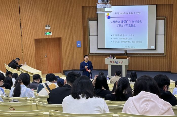 活动伊始,朱玉华指出当前形势下,法学毕业生竞争激烈以及法学毕业生人数逐年增长,可谓是“千军万马过独木桥。”他鼓励毕业生摆正目标、找准定位,充分把握就业机遇,积极应对就业挑战。此外,在考研、考公、考编和进入国企等方面提出建议,帮助同学们合理选择自己的就业方向。最后指出面临就业问题,法学生应该认清自我,加强自身能力建设,停止抱怨并要学会承担责任,主动适应从学生到职业人的角色转变。