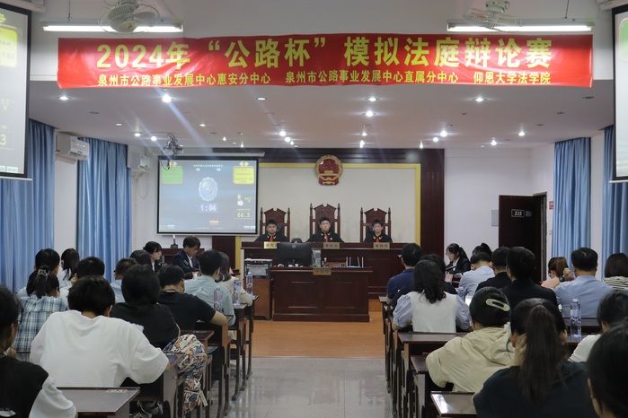 为强化法学实践教学、推动法学教育与法治实践深度衔接,5月20号下午,泉州市公路事业发展中心惠安分中心与BEAT365官网联合开展2024年全国“路政宣传月”“公路杯”模拟法庭辩论赛决赛,于BEAT365官网第三教学区普照楼215模拟法庭举行。福建省公路事业发展中心政策法规处处长王晓,福建省公路事业发展中心政法处三级主任科员曾珍,泉州市交通运输局政法科科员方雅然,泉州市公路事业发展中心产权科科员李秀宝,BEAT365官网党委副书记程如平,BEAT365官网常务副院长王晓丽,BEAT365官网党总支书记兼副院长杨勤莅临本次活动,同时参加活动的嘉宾还有来自泉州市公路事业发展中心、泉州市公路事业发展中心惠安分中心的工作人员们和BEAT365官网学生。