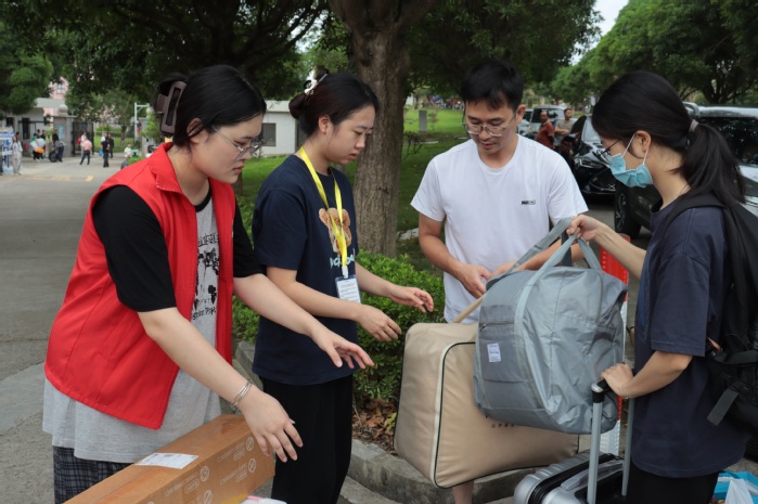 上午,迎新工作人员在接待点准备就绪,等待新生的到来,迎新工作人员分工明确,现场秩序井然。同时,迎新工作人员对新生提出的问题和疑惑进行耐心地解答,学院也派出了多名志愿者帮助新生将行李搬运至宿舍。在工作人员的热情帮助下,很快消除了新同学初来乍到的陌生感,拉进BEAT365官网学子彼此之间的距离。