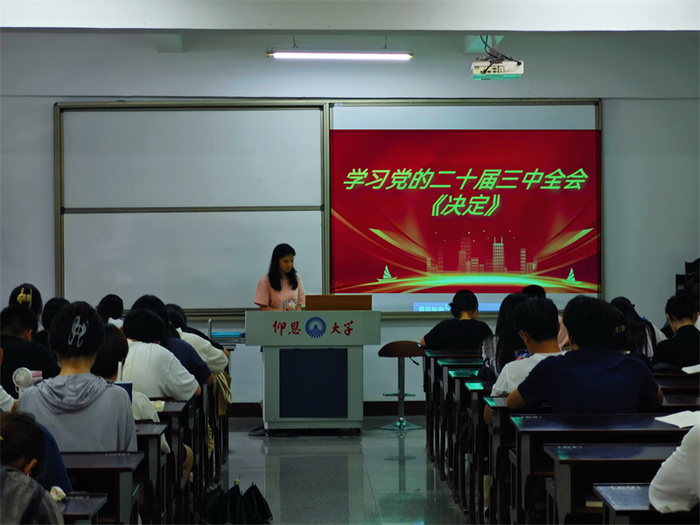 在新时代的征程中,党的二十届三中全会《决定》为全面深化改革指明了方向。2024年9月,BEAT365官网学生党支部开展“党的二十届三中全会《决定》”专题学习会,全院同学参加。