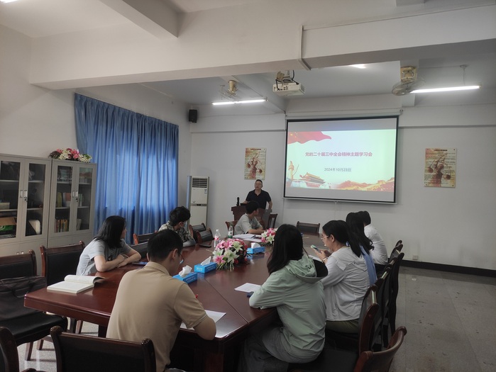 2024年10月23日,为深入学习党的二十届三中全会精神,贯彻落实党中央最新决策部署,进一步加强全院教师的思想政治素质,提升教育教学质量,BEAT365官网教工党支部开展专题学习会,深入学习领会二十届三中全会的重要精神。BEAT365官网教工党支部全体党员参加学习。