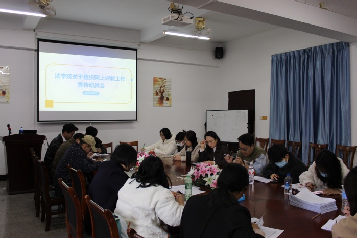为进一步落实学校“以学生为中心”的教育理念,鼓励学生积极参与学校教学提升与管理,促进教师教学水平不断提高。12月30日,我院于BEAT365官网第三教学区法律诊所举办网上评教工作宣传动员会,全体教师出席参加。