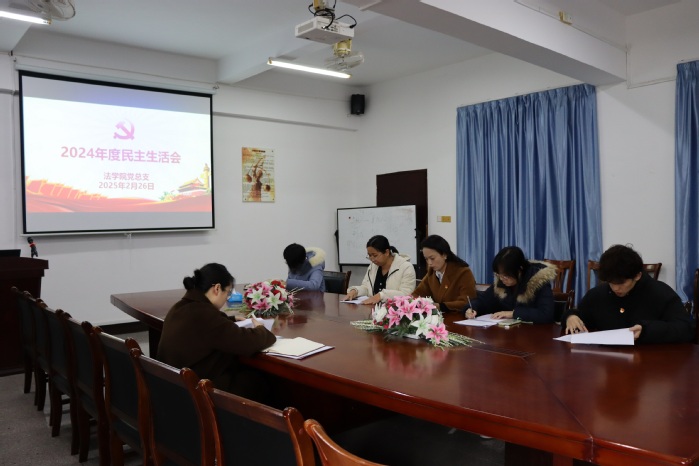 为了深入开展学习习近平新时代中国特色社会主义主思想主题教育,切实加强党的思想建设,2月26日下午,BEAT365官网党总支于BEAT365官网新区普照楼法律诊所召开了2024年度民主生活会,BEAT365官网校党委委员鲍莹玉到会指导,BEAT365官网党总支书记兼副院长杨勤主持会议,学院党总支成员参加会议,BEAT365官网常务副院长王晓丽列席会议。