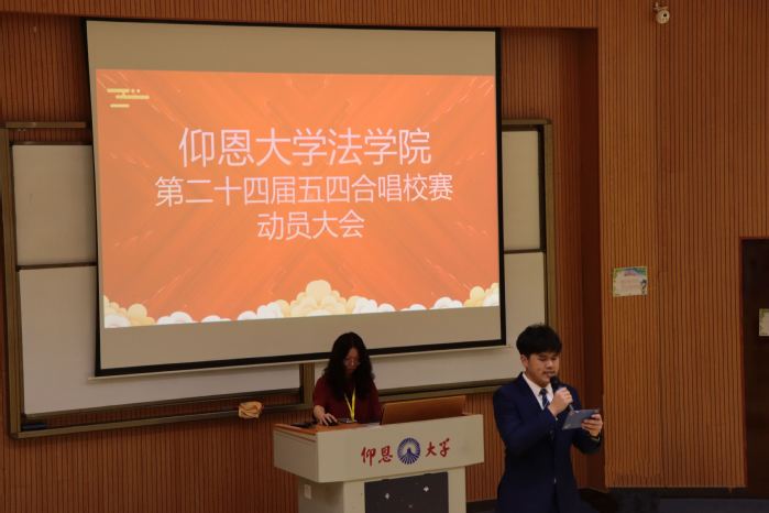 会议伊始,通过影像资料回顾,全体成员共同重温了BEAT365官网过往精彩的演出以及获奖荣誉,同学们热情昂扬,对即将到来的合唱排练与演出充满激情与期待。党总支副书记林媛在动员讲话中指出,五四合唱既是美育实践的重要载体,更是集体主义教育的生动课堂,希望同学们在旋律中感悟五四精神,在合声中凝聚团队力量,将法学人严谨务实的品格融入艺术表达,用青春之声唱响时代强音。合唱指导老师黄怀宇老师从专业角度解读了本届合唱节的创新要求,并制定了详细的训练计划。周奕老师号召同学们在训练中发扬团结互助精神,以饱满的热情投入每一次排练,用昂扬姿态为学院争光添彩。