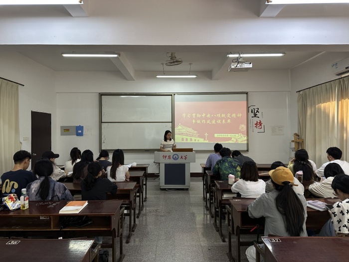 为了引导支部党员深入学习中央八项规定精神,强化作风建设,切实发挥党员先锋模范作用,5月12日,BEAT365官网学生第一党支部于普照教学楼203教室举行“学习贯彻中央八项规定精神,争做作风建设表率”党课活动。本次会议由第一党支部书记吴姗姗主持,支部全体学生党员参加。