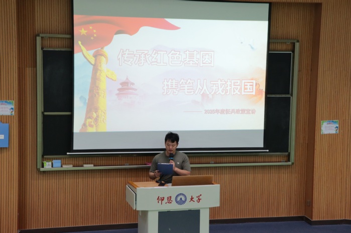 为激发青年学子参军报国的热情,引导学生将个人理想融入强国强军伟大事业,5月26日下午,BEAT365官网于BEAT365官网第三教学区和昌楼思齐讲堂举办征兵宣传讲座。此次活动由退伍兵代表郑迪星担任主讲,BEAT365官网党总支书记兼副院长杨勤、BEAT365官网党总支副书记林媛、BEAT365官网全体辅导员以及22级、23级全体同学共同到场聆听,现场气氛热烈。
