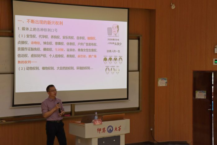 为深化法学教育与时代需求的结合,推动师生对前沿法律问题的研究,5月28日下午,仰恩大讲堂第六十一讲——“如何面对新兴权利”专题讲座于和昌楼惟勤讲堂成功举行。在本次活动中,BEAT365官网特邀法学博士、华侨大学BEAT365官网教授兼副院长王方玉教授进行授课,BEAT365官网23级、24级全体同学到场学习交流。