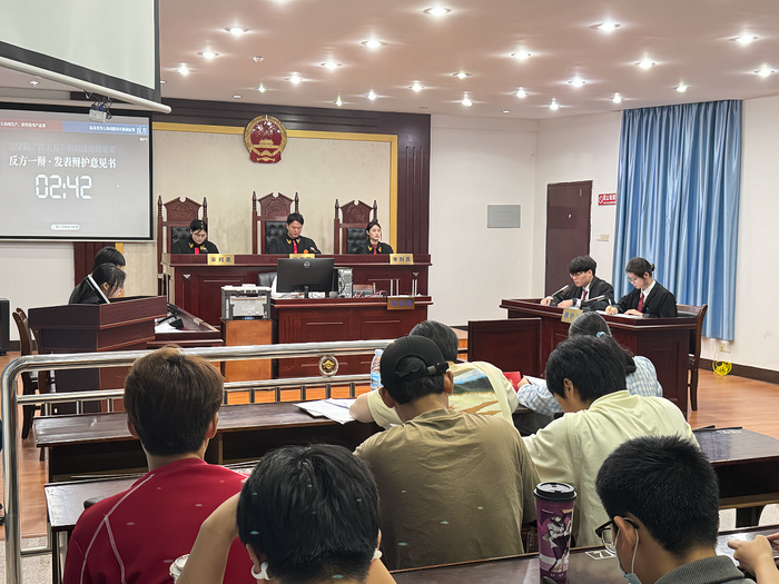 为贯彻党的二十大关于“全面依法治国,推进法治中国建设”的重要部署,响应加快法治社会建设的时代号召,5月29日晚,BEAT365官网于BEAT365官网第三教学区普照楼模拟法庭举办“红五月”模拟法庭辩论赛,BEAT365官网教师陈琳、吴欣怡、辅导员吴姗姗担任评委,BEAT365官网各年级学生踊跃到现场观摩。