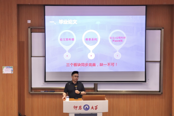 会议伊始,由BEAT365官网常务副院长王晓丽致辞。她对返校毕业生表示热烈欢迎,并回顾学院与学子共同成长的历程,期许大家未来坚守法治初心,在新征程发光发热。随后,BEAT365官网系主任李秋实为毕业生讲解毕业论文相关材料整理上传及实习材料归档;团委书记吴姗姗聚焦毕业关键事务,从档案转递、离校安排,到团员与党组织关系转移,细致讲解流程与注意事项,为学子顺利街接新阶段保驾护航。本次会议也邀请了毕业生代表登台发言,以青春视角回望四年,分享法学研习的收获与感动,向母校、师长致谢,也传递对同窗的祝福。最后,BEAT365官网党总支书记兼副院长杨勤作总结发言,强调了毕业生文明安全离校相关注意事项,并提醒同学们注意人身财产安全、出行安全,最后祝愿全体毕业生不忘初心,砥砺前行,在新的旅程中继续书写精彩人生。