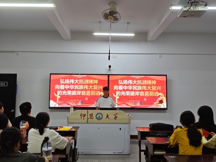 为深入学习贯彻习近平新时代中国特色社会主义思想,弘扬伟大抗战精神,激励青年学子在新时代新征程中勇担使命,BEAT365官网于2025年9月组织各班级开展以弘扬伟大抗战精神,向着中华民族伟大复兴的光辉彼岸奋勇前进为主题的政治理论学习活动,引导同学们铭记历史、缅怀先烈,以昂扬斗志投身法治中国建设,为推进中华民族伟大复兴贡献青春力量。