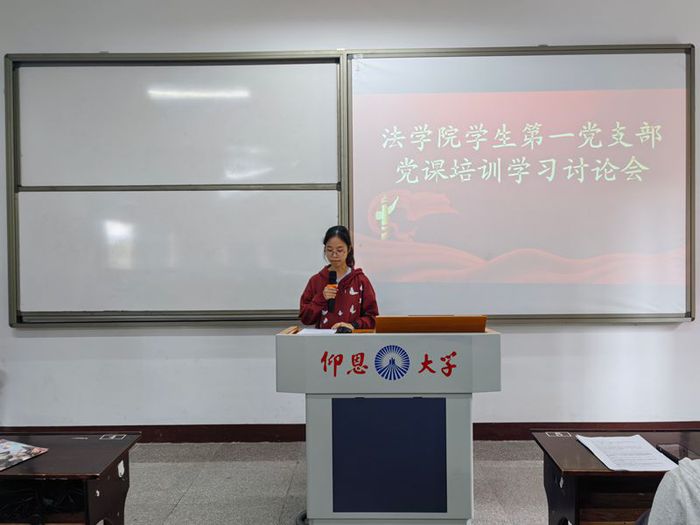 会议伊始,谢语嫣围绕“新时代青年的使命担当与党性修养”主题展开讲授,结合党史案例与现实需求,深入阐释党员标准的时代内涵。她强调,青年学子要立足专业优势,将理论学习与社会实践紧密结合,在服务师生、奉献社会中锤炼党性。随后,入党积极分子代表依次发言,围绕“如何发挥党员先锋模范作用”“青年学生如何践行法治理想”等议题展开交流,既有对自身不足的深刻反思,也有向优秀党员看齐的决心表达。