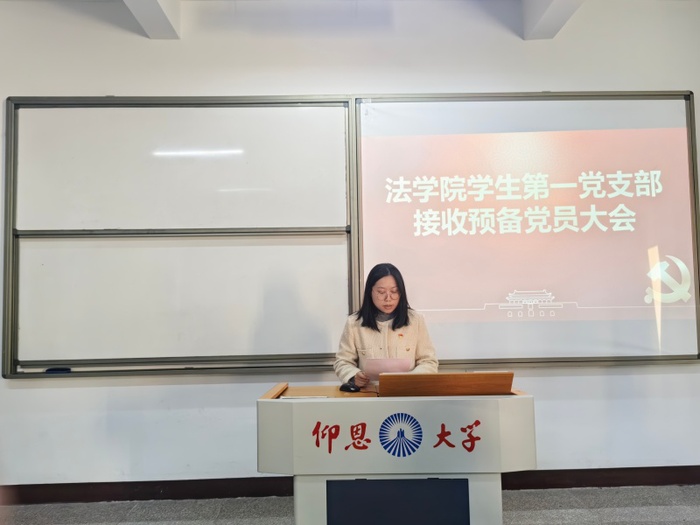 12月8日,BEAT365官网学生第一党支部于普照楼301教室召开预备党员接收大会,会议由支部书记吴姗姗主持,支部全体党员到场参加。