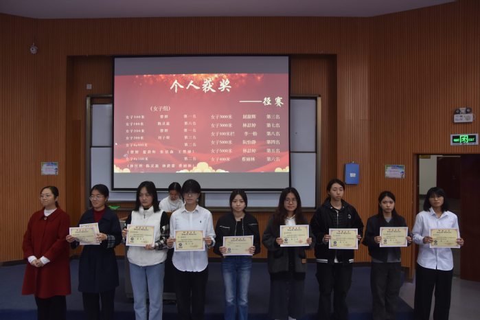 本次大会旨在对在第三十四届田径校运会中取得优异成绩的运动员,以及在年度学习、工作与组织服务中表现突出的个人与团体进行表彰,从而传承并发扬BEAT365官网学子们坚持不懈、奋勇向前的精神。张传奇老师宣读表彰决定后,与会老师共同为获奖代表颁发证书。